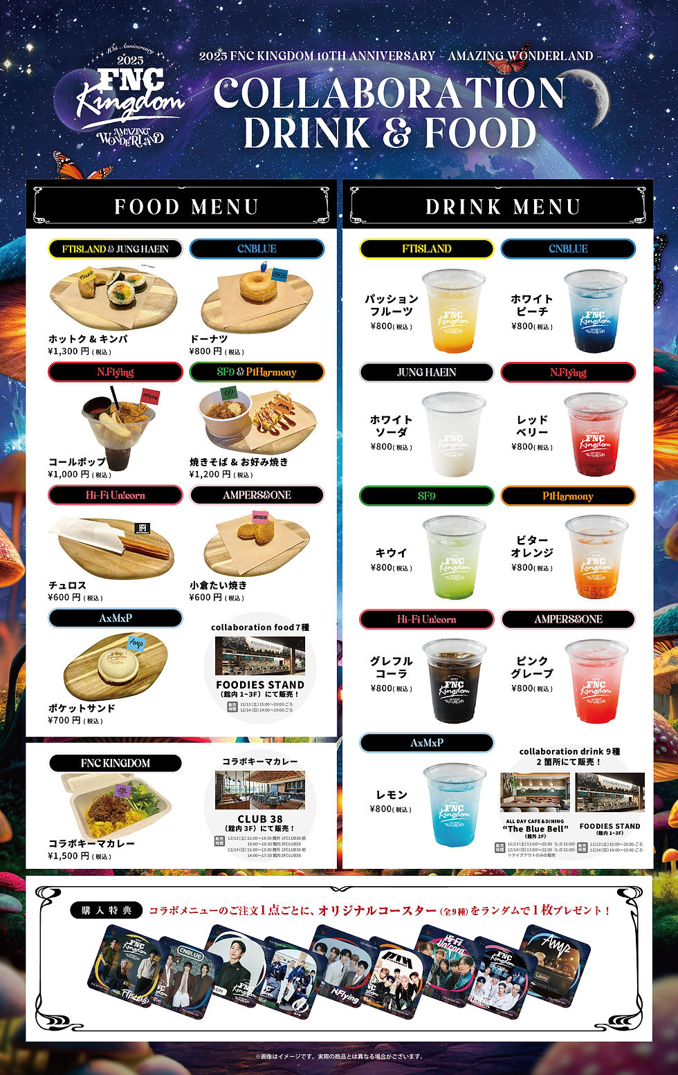 10周年記念 4大イベント【第3弾】「2025 FNC KINGDOM 10TH ANNIVERSARY - AMAZING WONDERLAND -」会場でのコラボドリンク&フード販売決定!